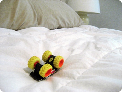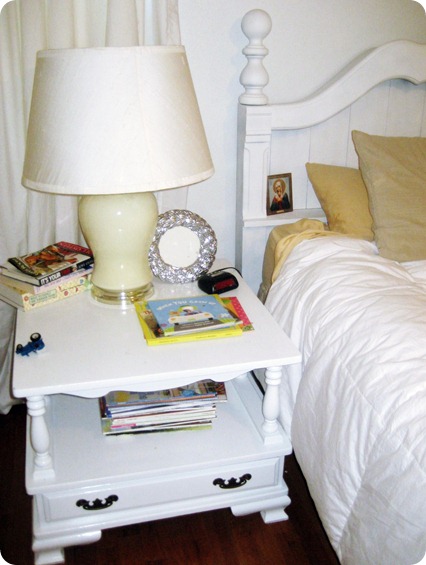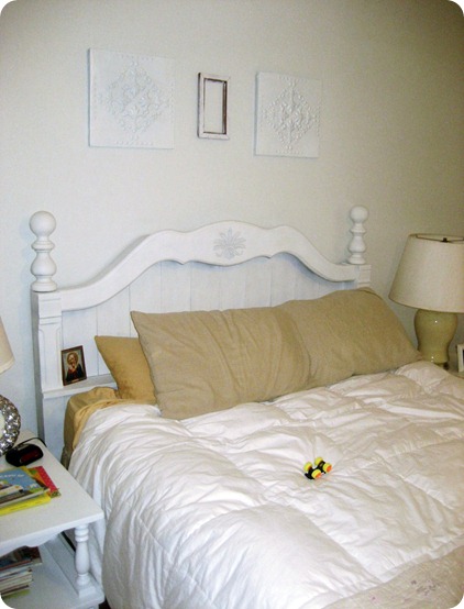 I found my headboard at Goodwill for $15. It was funky oak…but I knew those chunky features would be gorgeous with my favorite…white paint. And BTW…there are little hints of Jax in all of these pictures. I thought about staging the pics…but where’s the personality in that?? This is our {REAL} life.