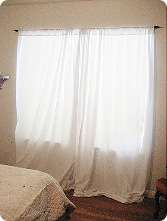 Love the crisp white look! I have the same curtains - on our window and closet. When I first read about this idea last Spring twin sheets were $2 each, when I bought them they were $3, now you say $4. Wal-mart must be catching on. :)